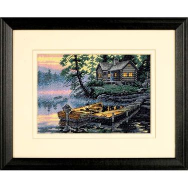 All is calm in the early hours at a peaceful lakeside cabin in our Morning Lake design. This counted cross stitch piece is perfect for any outdoor enthusiast. Kit contains presorted cotton thread, 18 count cotton ivory Aida, needle, and easy instructions. A Gold Collection Petite. Finished Size: 7 x 5 (18 x 13 cm).