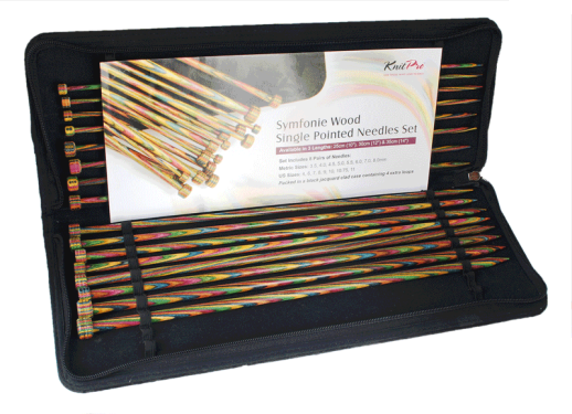 - This single pointed set of Symfonie needles comes in a black jacquard fabric case with zip.